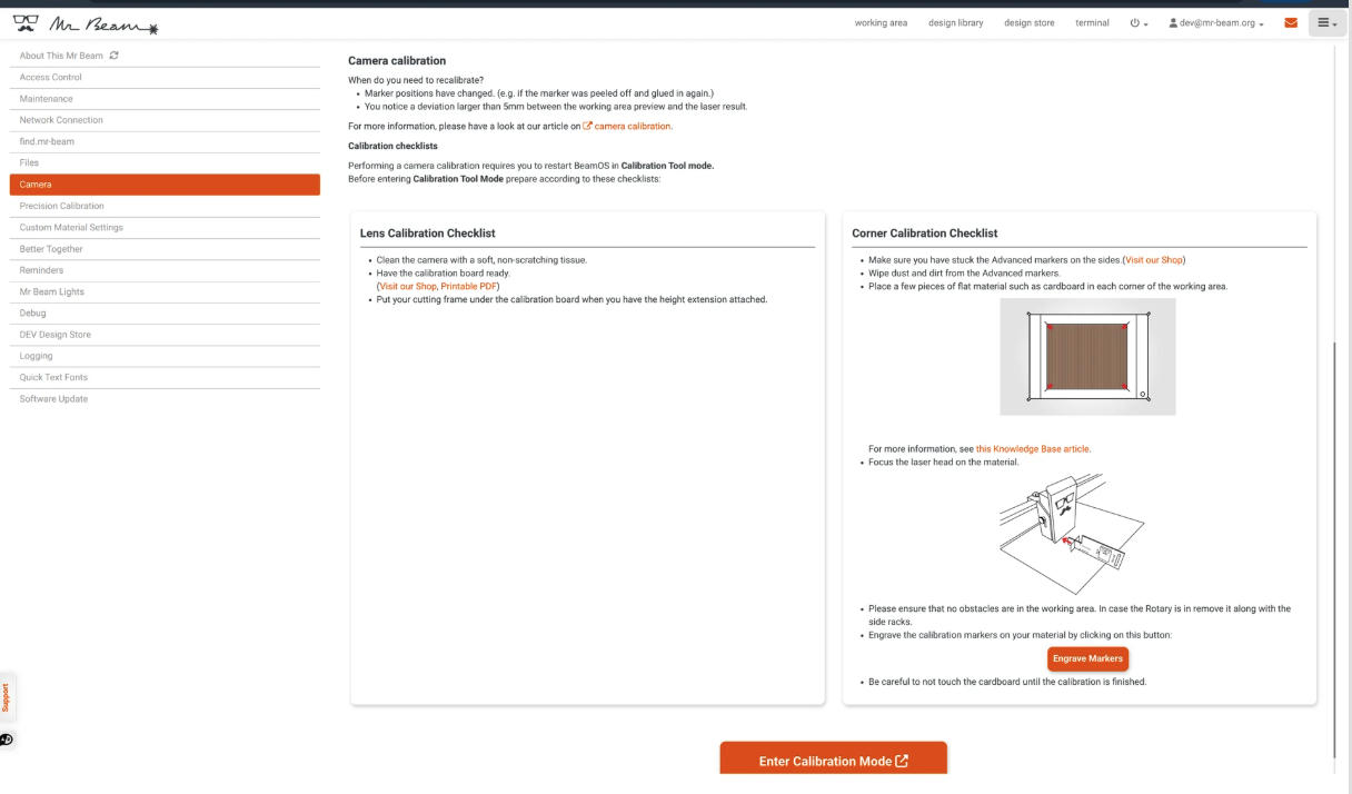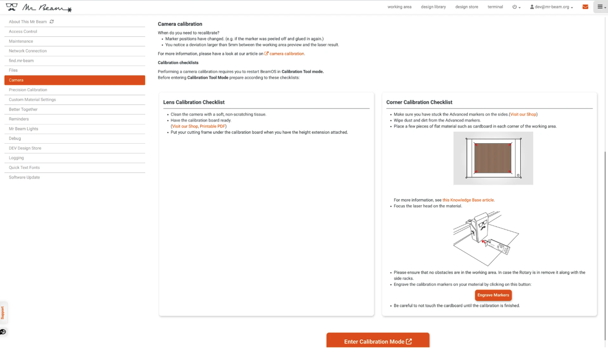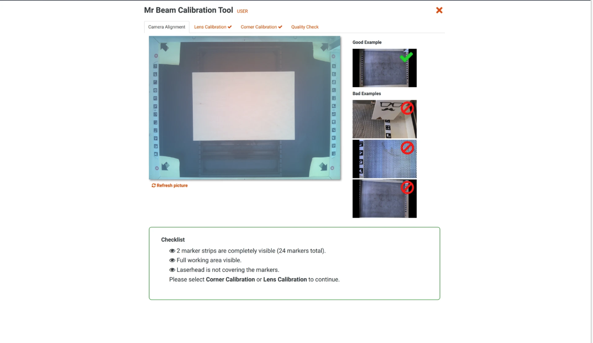 Dieser Artikel erklärt die Kalibrierungen, die durchgeführt werden müssen, damit dein Mr Beam: