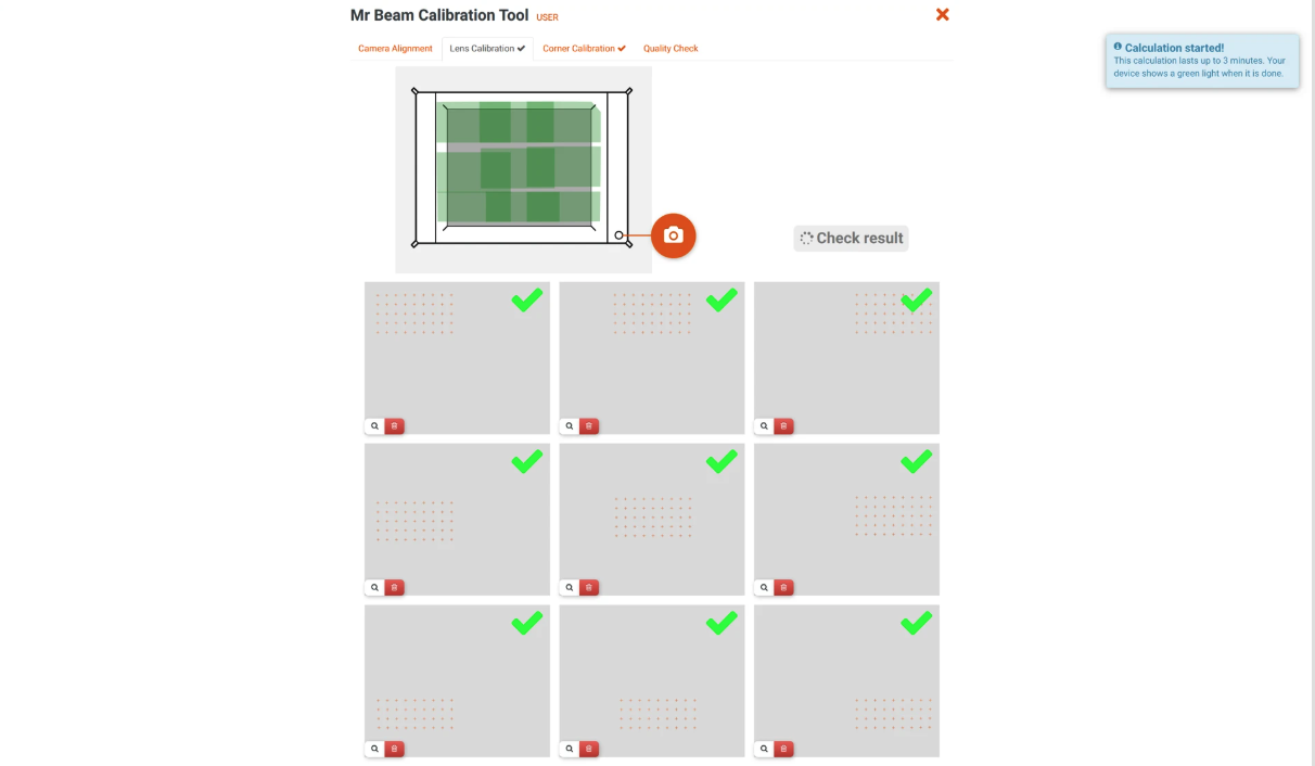 - Nach dem 9. Bild startet die Kalibrierung automatisch (bis zu 3 Minuten)